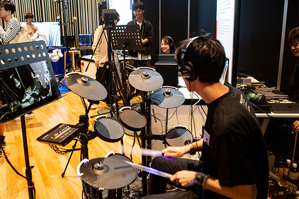 Minds1020Lab(横浜市立大学COI-NEXT)の「あつまれおんがくの森」ブースでは、メタバース空間を利用した多彩な音楽体験を楽しめる企画を用意。森の中にみんなで集まって音を楽しんだ昔の人たちのように、現代の技術で音の楽しさとつながりを感じることができる。多様なリズム、多彩なメロディ、個性豊かな表現、心地よい音の空間、みんなで創る音の世界を体験できる展示となっていた。