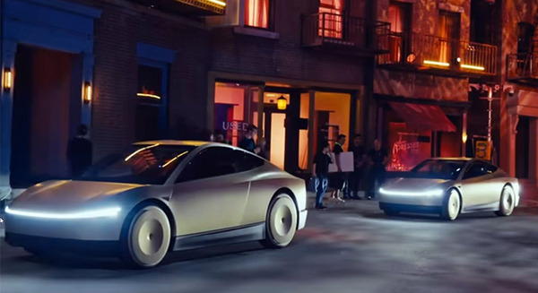 イーロンマスク氏は動画の中のスピーチで、ロボタクシー「サイバーキャブ」が普及によって移動コストを下げ、自家用車の利用も減って駐車場を公園に変えることができる、と語っている。また、ロボタクシーの無線給電システムにも触れている。