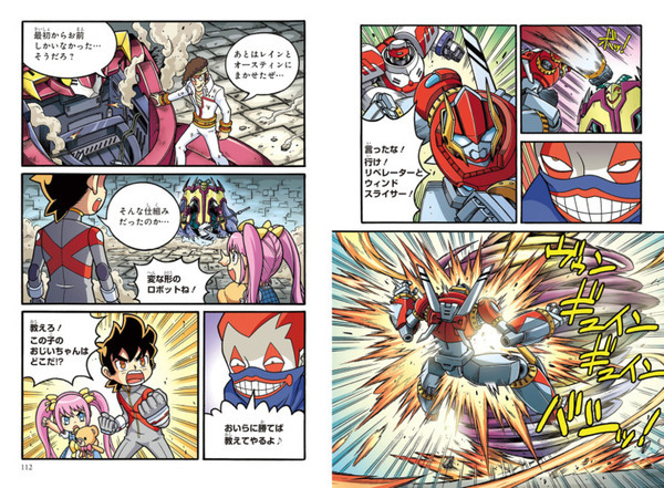 シリーズ最新作『どっちが強い!?A(7) 恐怖の幽霊パニック』では、主人公のレインたちが、幽霊が出ると噂される怪しげな屋敷に潜入。そこで出会った謎の少女を救うため、幽霊ロボットを操るピエロ「ジョーカー」と緊張感あふれるロボットバトルを繰り広げる。