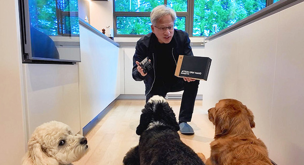 NVIDIAの創設者のひとりでCEOのジェンスン・フアン氏は自宅のキッチンから動画を配信した。キッチンからの配信の前回、コロナ禍でリアルな発表会が制限されていた2021年、キッチンの調理器具からフアン氏がスーパーコンピュータ「H100システム」を取り出して話題になった。そして、今回、超小型の新しい生成AIスーパーコンピュータ「Jetson Orin Nano Super」をオーブンから取り出して紹介した。