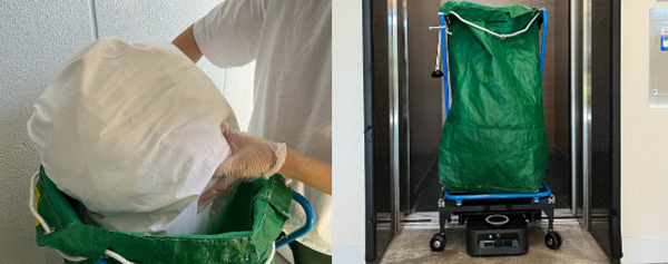 10階建のホテルで、ロボットがエレベーターと連携しリネン搬送を自動化