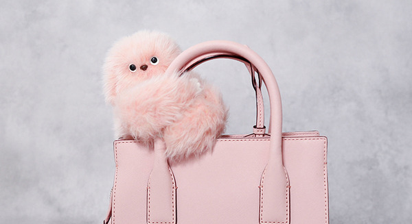 近くに人がいることをセンサーで認識すると、ちらりと、じーっと、赤ちゃんのような目や首の動きで周りを見るぬいぐるみロボット。ふわふわした毛に覆われた未知の生きもののようなデザインで、大きさは手のひらに乗るぐらい。カバンやリュックに抱き着かせることができ、いつでも連れ歩くことができる。