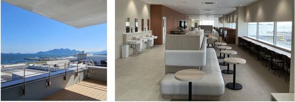 瀬戸内海に面した立地を活かし、食堂や休憩スペース等の厚生エリアは眺望と採光を確保した快適な空間を実現する。