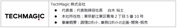 まずは各社共通課題である秤量工程の自動化に向けて、分科会を立ち上げ、解決策を検討していく。本コンソーシアム参画企業と調理ロボットや業務ロボットを手がけるテックマジック社が共同で取り組むことで、開発コストの分散、ソリューションの汎用化、専門的な技術やノウハウの共有、市場導入のスピードアップなどを図る。これらの取り組みは、各社の課題解決のみならず、食産業全体の課題解決にも寄与することが期待されている。
