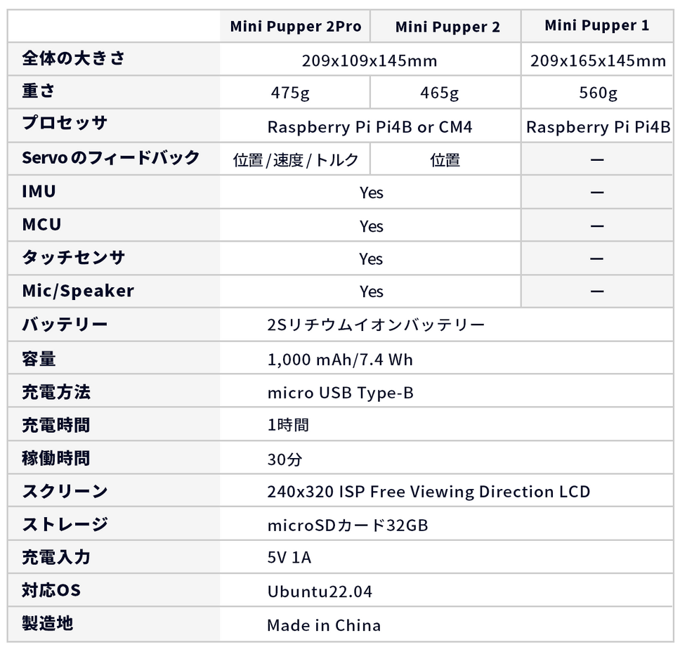 「1家に1台、ロボットがある世界」をビジョンに掲げ、初心者からプロフェッショナルまで扱いやすいロボット犬「Mini Pupper」を発表。ROS、OpenCV、およびRaspberry Pi搭載の四足歩行ロボットを1,000ドル未満の価格で発売するのは世界的にも珍しく、多くのロボティックスコミュニティやメディアから高い評価を得ており、現在世界で約4,000台のミニぷぱが家族として迎えられている。そしてこの度、満を持してMini Pupper2が日本にて発売開始となる。