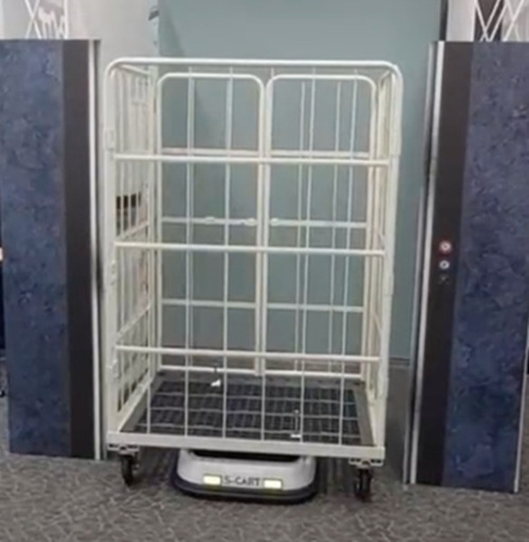 加えて、現在リネンサプライ会社からの搬送カートが軒先渡しされた後に、スタッフが各フロアに搬送する重労働を支援するために、リネン搬送カートをエレベータに連携させて自律乗降できるようにさせることで、自由に館内移動できることを目指し、水明館様とリネンサプライ会社様と一緒に搬送ロボットシステムの導入のためのプロジェクトを進めている。