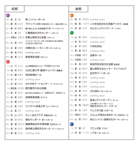 チケット発売日 | 2025年2月22日(土)よりイープラスなどにて随時発売 ※会場によって発売日が異なります。 ※チケットの詳細につきましてはツアー公式ページで公開される詳細をご確認ください。 |