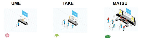 明和電機のライブコンサートはその規模にあわせて「松(MATSU)、竹(TAKE)、梅(UME)」に分かれる。