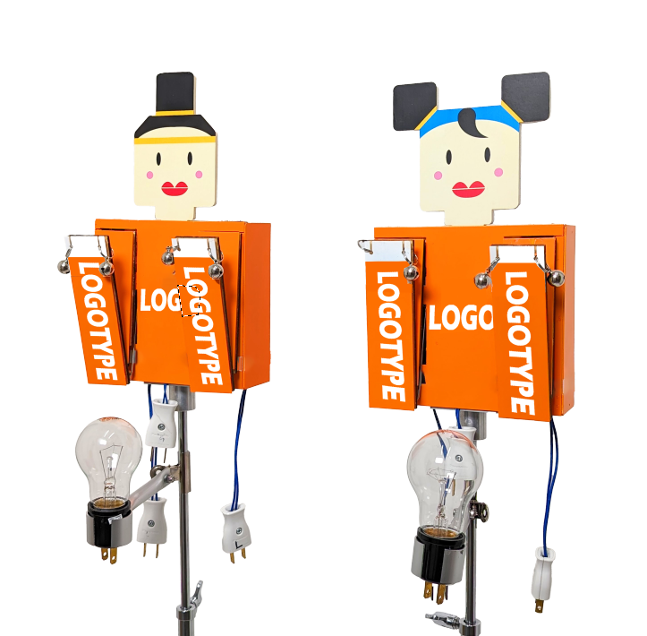 明和電機のライブを盛り上げるダンスロボット「パンチくん&レンダちゃん」の服に、協賛者のロゴやメッセージを表記する。ライブでは、このロゴ付きの服でパフォーマンスを行る。ライブには1名を最前列に招待する。パフォーマンス中は撮影可能。撮影した写真や動画は自由使用可能。また、ロゴの入った服は、ライブ終了後に渡される。企業や商店のロゴのみならず、「まもる、連絡待つ」などのメッセージも可能。(※一会場、一体での協賛金、協賛内容となる。二体を希望の場合は10万円になる)