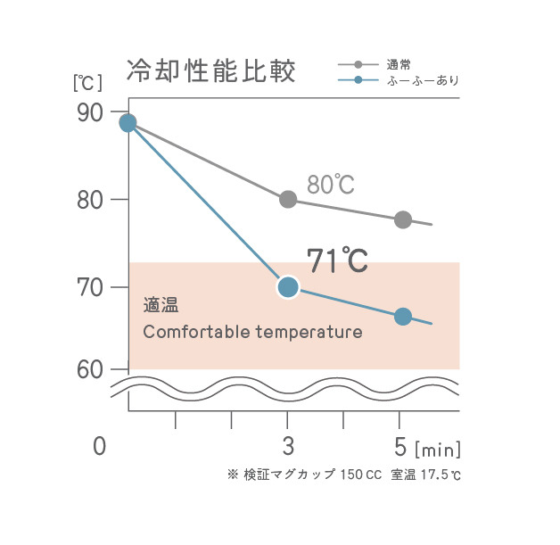 マグカップ、スープカップや深めのお皿、お椀など、さまざまな食器に合わせて使うことができ、3分の使用で約-15℃の冷却効果が認められた。本体の電源供給はUSB Type-Cによる充電式となっており、電池交換は不要。