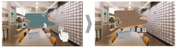 家具の3Dモデル表示に加え、ハンドジェスチャーによる操作で、カラーの変更や商品説明動画の視聴なども可能。