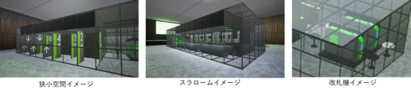 レースコースは、鉄道の駅をモチーフに設計。ドローンが天井裏・床下空間をイメージした構造の中を巧みに飛行し、Suicaを実際の改札機にタッチしてゴールする。
