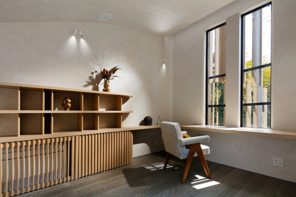 住む人の動線や仕草に呼応する空間設計。曲面形状や動線配置が、自然で優雅な所作を引き出し、日常に美しさをもたらす。