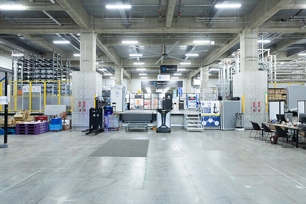 Techrum Hubは野村不動産株式会社が運営する施設。30社以上の企業と、60以上のソリューションがひとつの空間に集うオープンイノベーション拠点。各ソリューションが企業の垣根を超えてつながり、物流を巡るストーリーが展開されている。Techrum Hubでは、「みつかる」「ためせる」「つながる」のすべてが揃う物流DXの最新技術が体感できる。