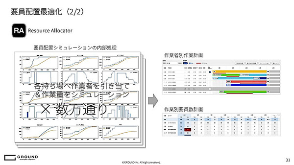 そして新たにリリースされたモジュールが、今回発表された「Resource Allocator(リソース アロケーター、RA)」だ。いまは人間の管理者が「カンと経験」のみで決めている人員の配置を自動で最適化するツールだ。「もっとも現場からの引き合いが強い」という。
