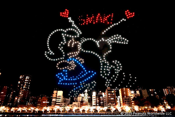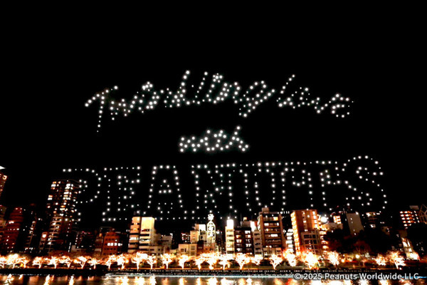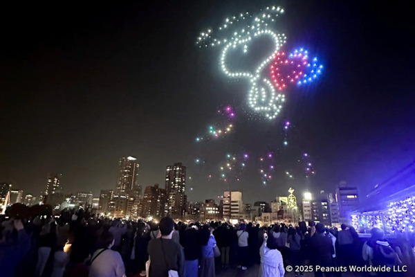 株式会社ドローンショー・ジャパンは、2025年3月23日(日)から30日(日)までの8日間、大阪市・天満橋「川の駅はちけんや」周辺にて開催。スヌーピーで知られるPEANUTSの日本初のドローンショーとなり、「大阪・関西万博開幕直前スペシャルドローンショー」も開催された。