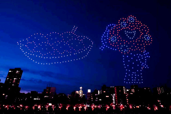 日本初のPEANUTSドローンショー