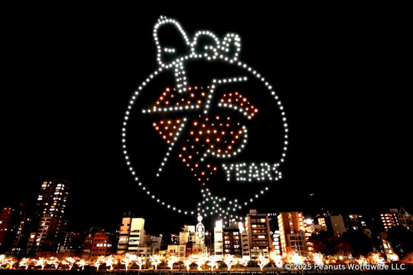PEANUTS 75周年記念ドローンショー Twinkling love with PEANUTSはPeanuts Worldwide LLCと株式会社ソニー・ミュージックソリューションズとの契約に基づいて提供