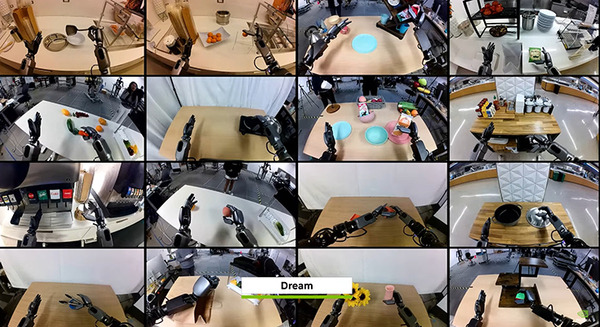 生成AIが未来の動きを「ドリーム」のように想像して生成、それを現実軌道と動作データに変換してAIが学習していく。