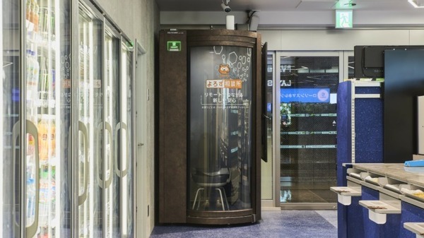 「次世代リモート接客プラットフォーム」を活用したリモート相談ブース。AIアバターが最適なサービスへの案内を行い、その後、各サービスの専門スタッフが、アバターまたは顔出しで相談に応じる。