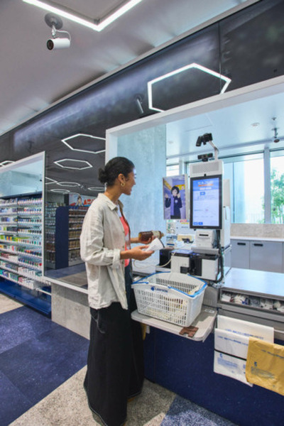 これまで一部ローソン店舗でも導入されてきた”アバター店員”が、今回新たに3Dディスプレイによって立体的に表示され、セルフレジの利用者をサポート。存在感のあるアバターによる案内で、より没入感のある接客体験を実現する。