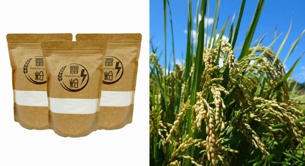 雷粉は、宮崎県延岡市で収穫された「ミズホチカラ」をこだわりの製法で米粉にしたもの。粒が細かく、粒の傷つきが少ないお米の粉のため、小麦粉のように使いやすく、様々な用途で使用できる。