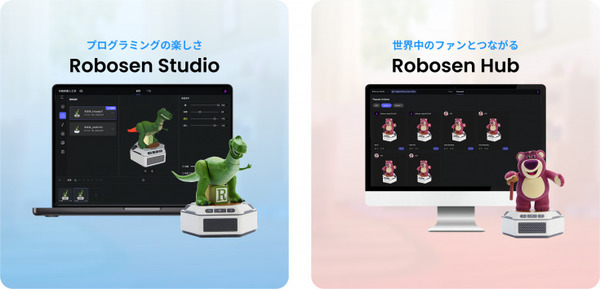 パソコン用ソフトウェアRobosen Studioで自分だけのアクションを創り、Robosen Hubで世界中のファンと共有できる仕組みだ。Robosen Studioに音声ファイルをアップロードするだけで、音声言語に拘らず、自動的にアクションを作成してくれる。