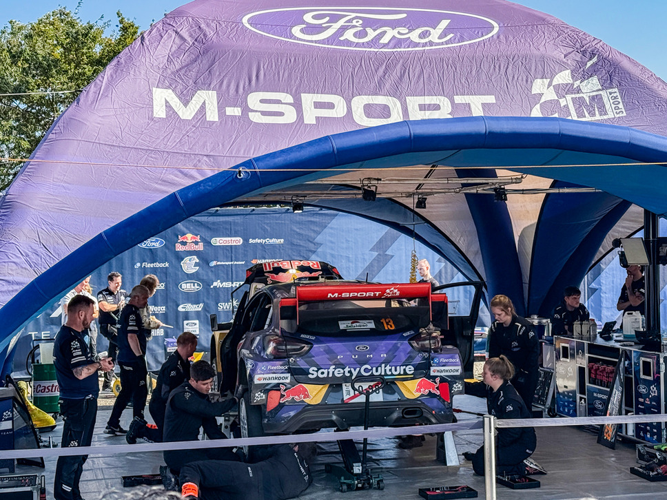WRCラリーのサービスパークとは、ラリーカーの整備や修理を行うピット(ガレージ)のような施設であり、チームの拠点としての役割も持つ。