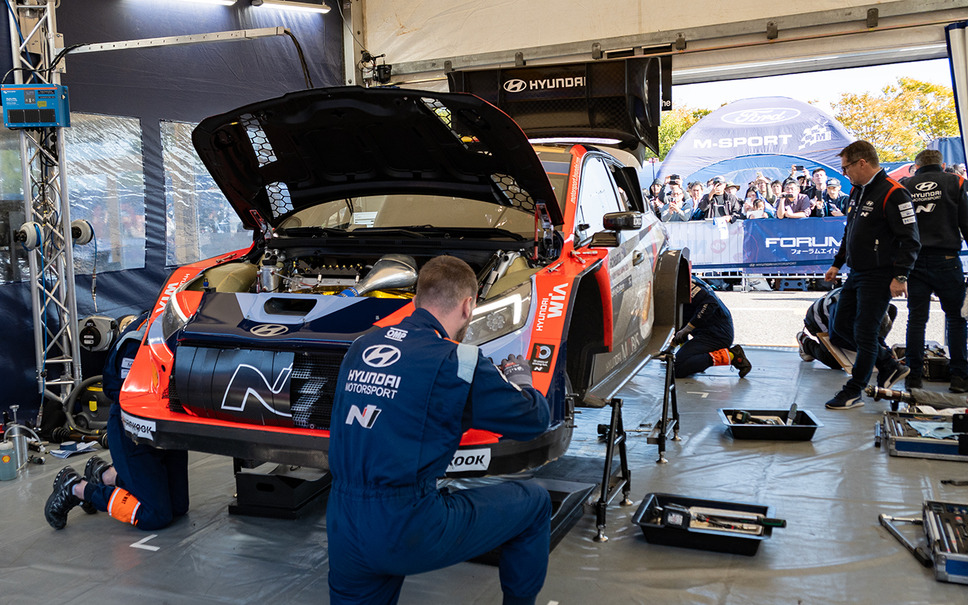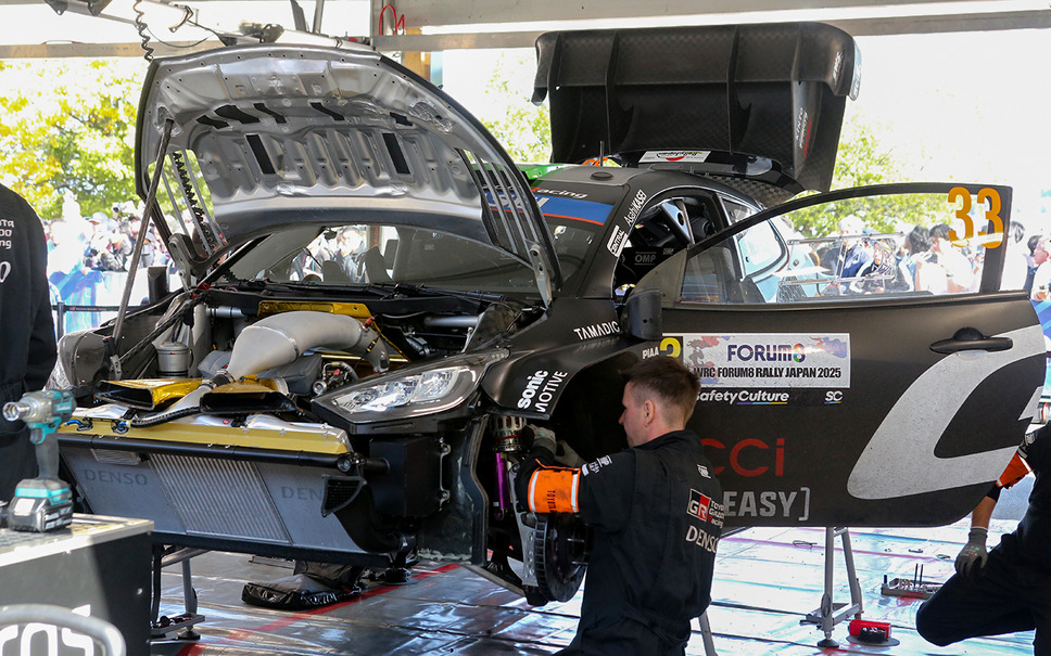 競技中の修理やメンテナンス、セッティング変更などは、すべて決められた時間内で実施される。2日目の昼のサービスでは40分間が与えられ、超過して作業した場合はペナルティの対象となる。