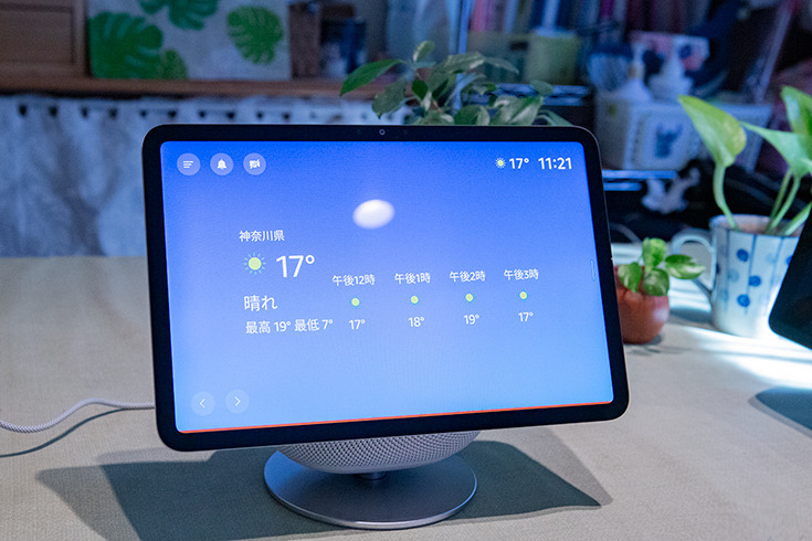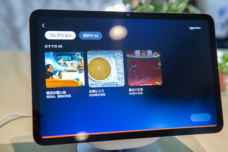 スマホで撮った写真を「Amazon Photos」にバックアップ(転送)しているなら、「Echo Show 11」の画面を使っていないときに、転送した写真をホーム画面に表示してデジタルフォトフレームとして利用できます。スマホでたくさん写真を撮るけどあまり見返すことがないな、と感じている人は、楽しかった思い出を隙間時間に楽しめるのでオススメです。私もこの機能はお気に入りで、スライド表示される昔撮った写真を観ながら「あぁ、こんな日もあったな」「懐かしい」などと浸っています。