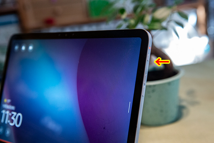 「Echo Show 11」にはフロントカメラを隠す物理的な遮蔽カバーがありません。それは好みが分かれますよね。筆者も自動追尾機能がある「Echo Show 10」を除いて、主に執筆デスクで使用している「Echo Show 8」はカバーを使って塞いでいましたので、この点は少し抵抗を感じています。なお、操作ボタンはディスプレイの右横(向かって)に配置されています。