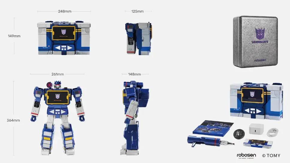 本製品はTVアニメ『戦え!超ロボット生命体トランスフォーマー』(1985~86年)に登場するディセプティコン(デストロン)通信・諜報担当「サウンドウェーブ」を完全自動変形で再現。ロボットモードからカセットモードへ変形し、二足歩行や多彩なアクションを実行する。