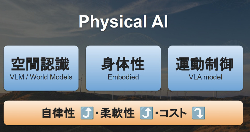 さらに、世界的に注目されているロボット基盤モデルや世界モデル、ヒューマノイドの社会実装における課題と期待にも触れ、人とロボットが共存する社会の近未来像を、技術やビジネスの観点から探りました。