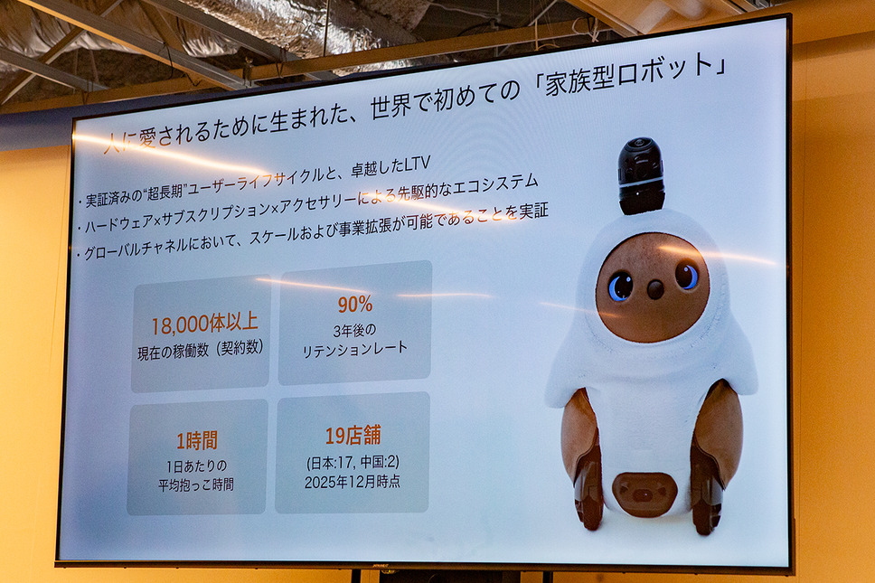 現在、稼働中のLOVOTは1万8,000体以上。これは累計出荷数ではなく、実際に家庭や施設で稼働し続けている台数だという。