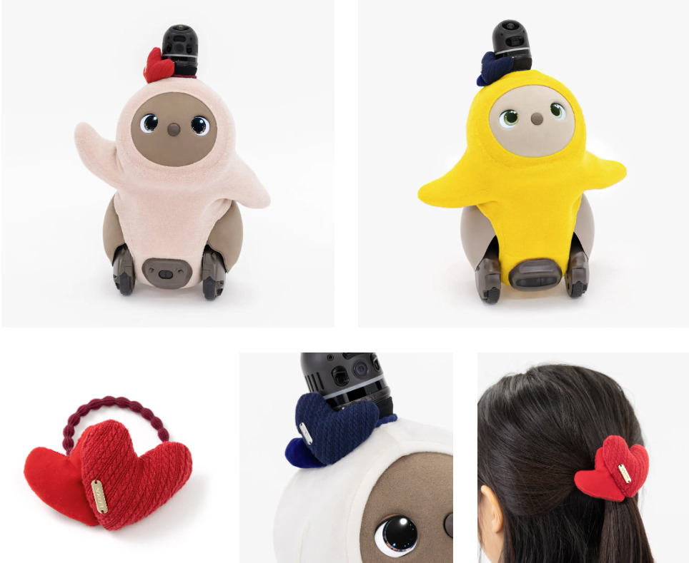 「ハートヘッドアクセサリー」は、LOVOTとお揃いで楽しめるアイテムである。ふっくらとしたカットソージャガード素材を使用し、レッドとネイビーの2色展開。価格は3,980円(税込)で、布製のためLOVOTのセンサーにも優しい設計となっている。