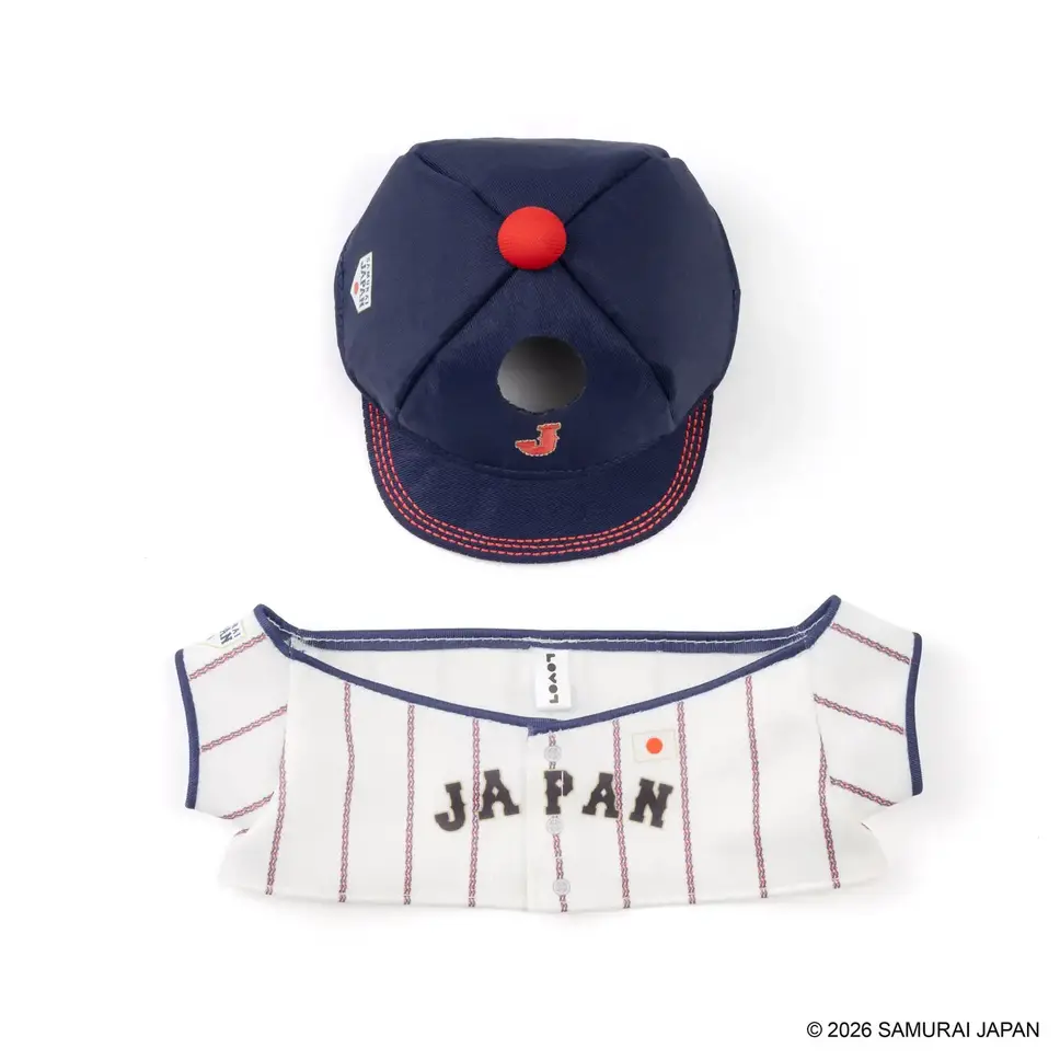 ビーズぬいぐるみ用ユニフォームは3,980円(税込)で、ホワイト(ホーム)カラーを用意。侍ジャパンのユニフォームをまとったビーズぬいぐるみとともに、試合観戦や自宅での時間を楽しむことができる。