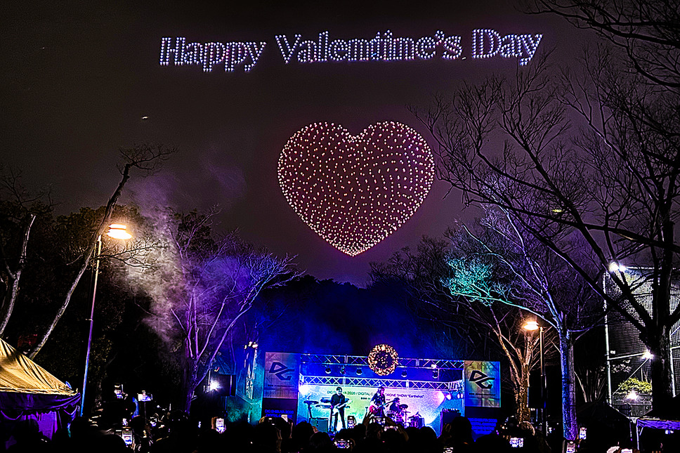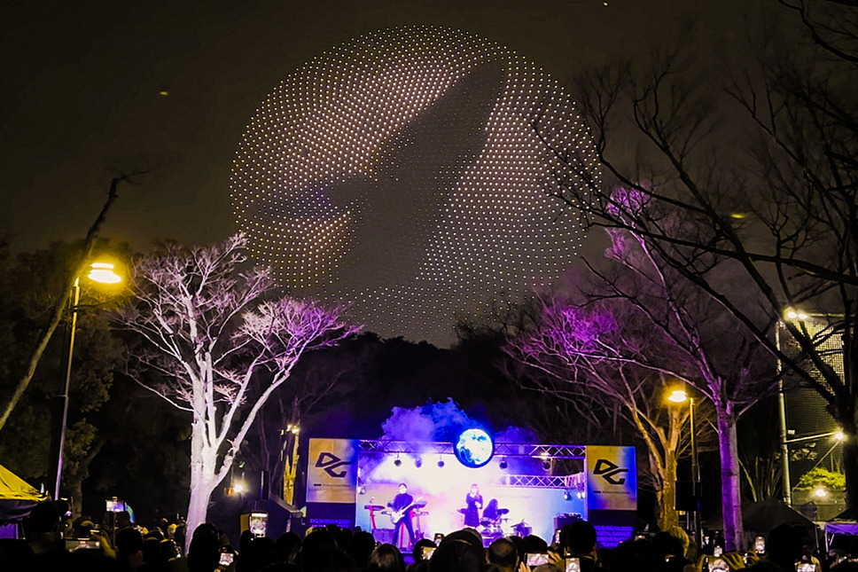 巨大なスケールで夜空に展開された光の演出に歓声が上がり、ドローンによるものとは思えないほど精緻で立体的な演出に、観客は息をのんだ。