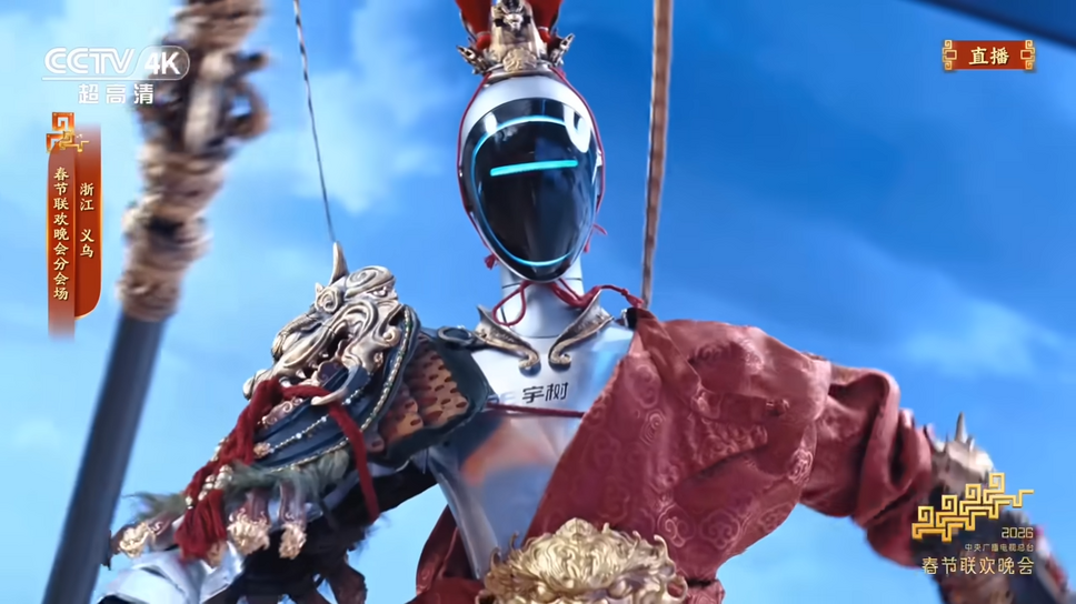 公開されている同社の動画公判では、孫悟空の重厚な鎧を身にまとい、四足歩行ロボットB2Wが演じる筋斗雲に乗って登場するヒューマノイドの姿も。雲の上から新年の祝福を届けるという演出が行われ、中国の伝統的な物語である西遊記を再現している。