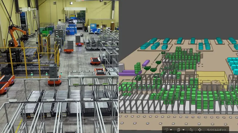 そこで同社は、将来的な人手不足を見据え、重筋作業の自動化と変動性が高く属人化しやすい作業のデジタル化に挑戦。Mujinとともに、ロボット・AGV・デジタルツインをフル活用した、革新的な物流DXを実現した。