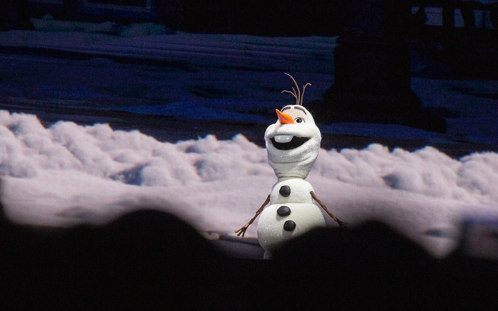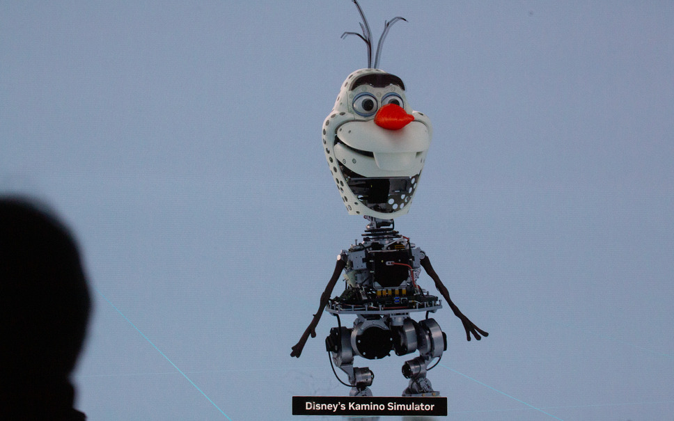 ステージに現れたオラフは、表情豊かに歩きながらフアンCEOと自然な会話を披露した。