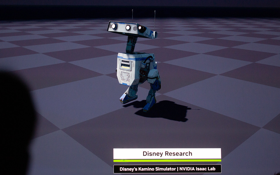 フアンCEOは基調講演の終盤でフィジカルAIやヒューマノイドについて言及し、連携しているロボットメーカーや機体を紹介。その中には、ディズニーリサーチが開発した「BDXドロイド」(スター・ウォーズデザイン)も含まれていたが、実際にステージに登場したのは最新鋭のロボット「オラフ」だった。
