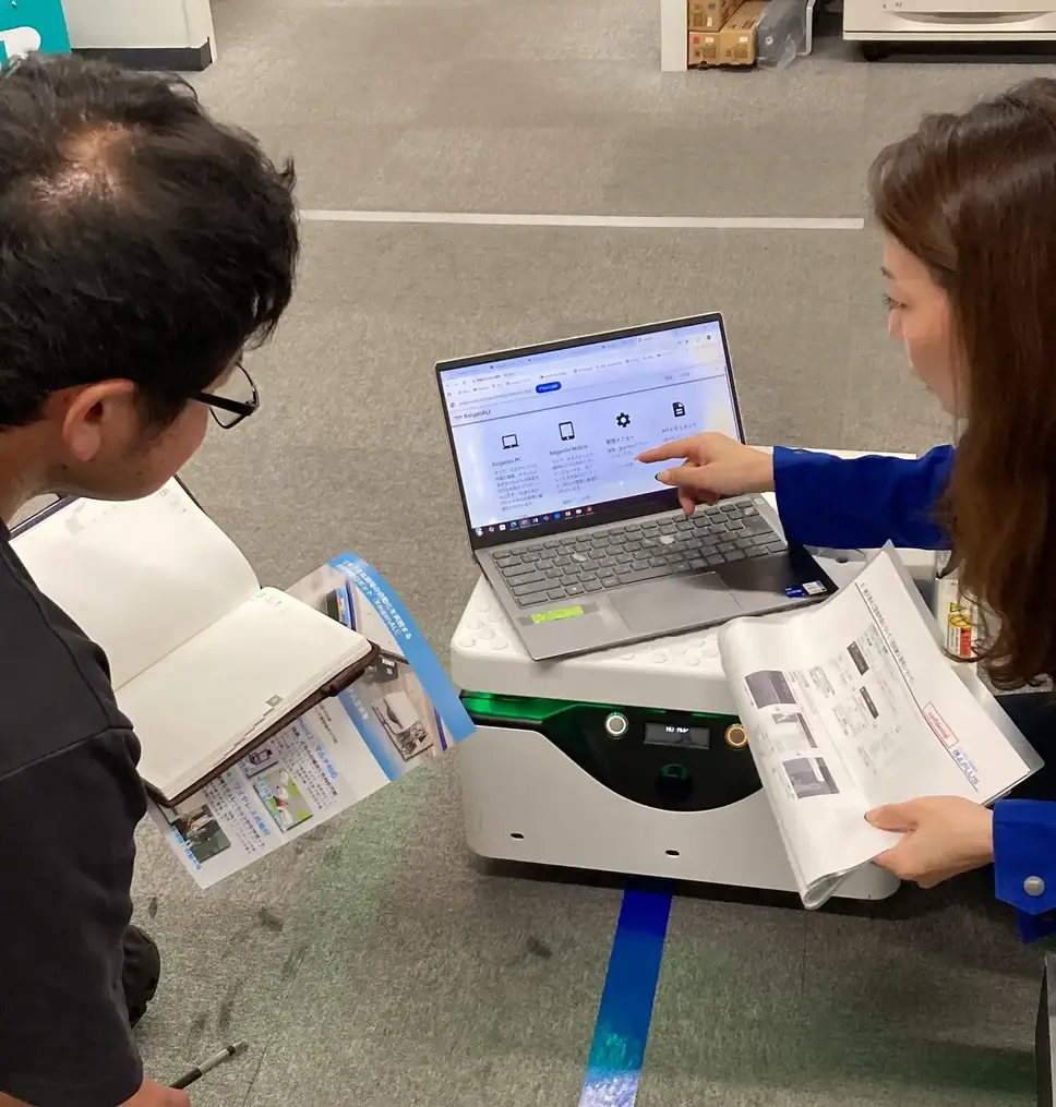 主な展示内容として、AMRのケイガン「ALI」へのワイヤレス充電デモでは、来場者自身がコース設定を行い、自律走行の操作体験も可能となっている。