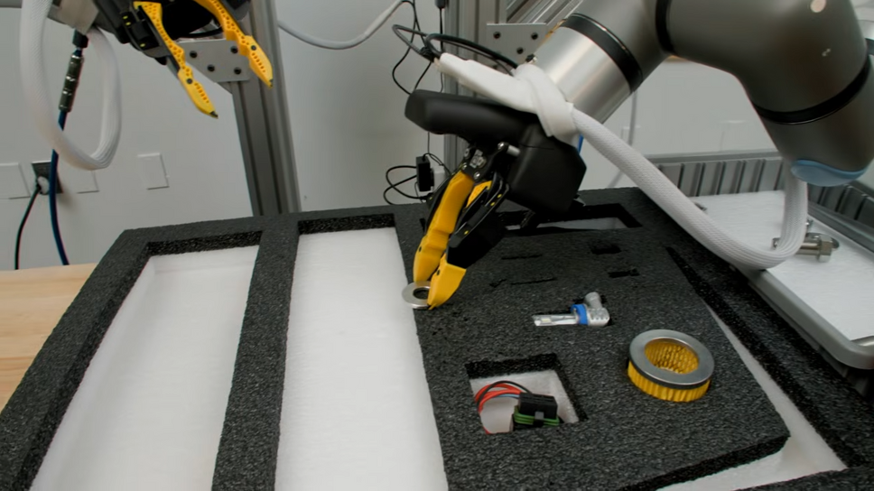 さらに映像で強調されているのが、未知の事態に対する「即興的知能」である。例えば、ロボットがワッシャーをスロットに挿入するタスクにおいて、部品を誤った向きで置いてしまう事態が発生しても、ロボットは自らもう一方の手を使って部品の角度を微調整し、作業を完遂するようすが記録されている。