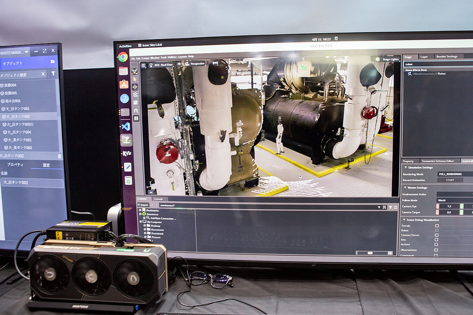 トロンは主にフィジカルAIの開発と導入を手がける日本企業。今回は、実工場を仮想空間に再現するデジタルツインを提案し、NVIDIAのOmniverseやIsaac Simなどを活用したプロセスを紹介している。