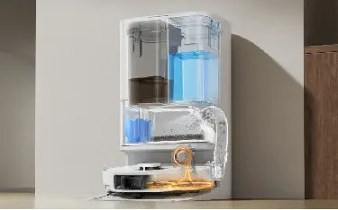 セルフクリーニングシステムには20個のスプレーノズルを備えた一体型洗浄ボード設計を採用し、水を均一に分配。モップだけでなくベースステーション自体も自動洗浄し、洗浄後は汚水を排出する。清掃効率を高めながら水使用量を抑え、残留汚れやニオイを最小限に抑える設計となっている。